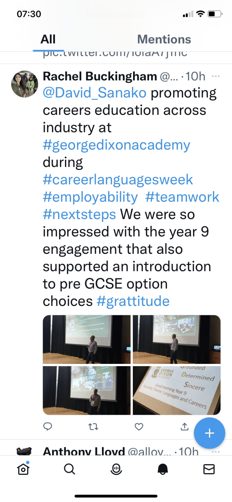 I would just like to say, on behalf of Stockport Academy, Year 9 and the MFL Department thank you so much for your time and wise words today in your inspirational talk today.